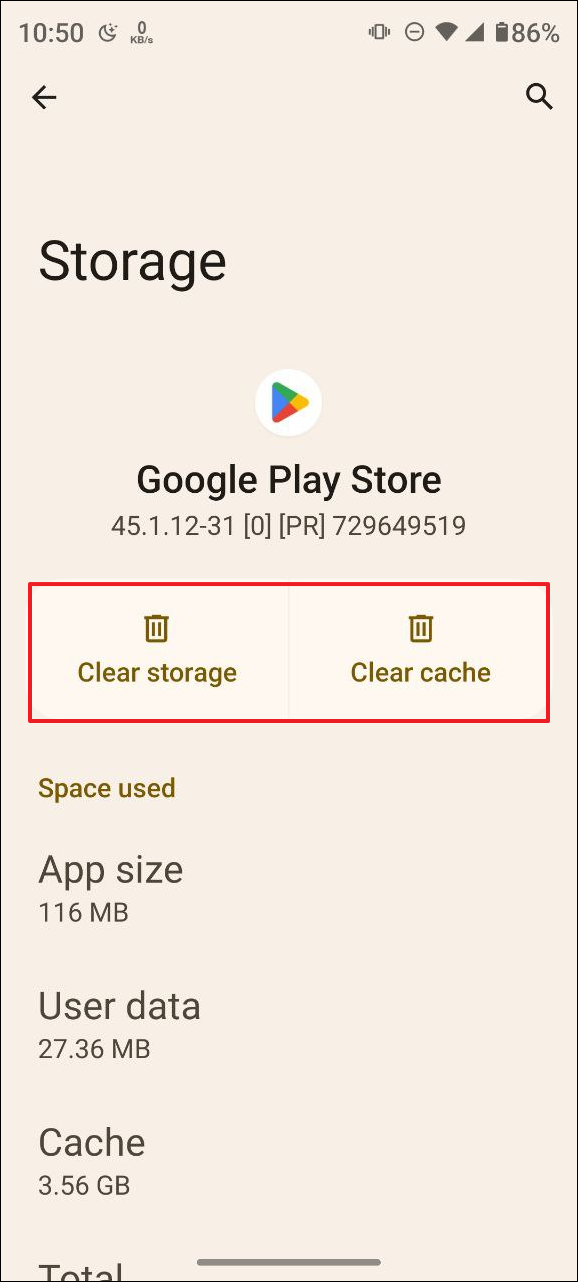- Finally, on the 'Storage' page, tap on 'Clear storage' and then on 'Clear cache' to clear the storage and cache. Now, try using the Play Store and check whether the error is gone.