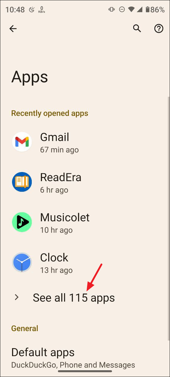- On the Apps page, tap on 'See all apps'.