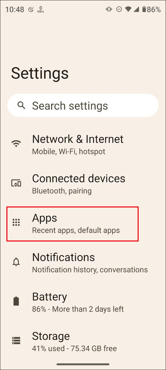 - Open the Settings app and tap on 'Apps'.