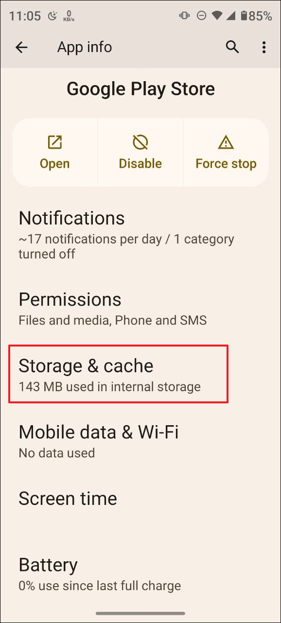 - Then tap on 'Storage and cache'.