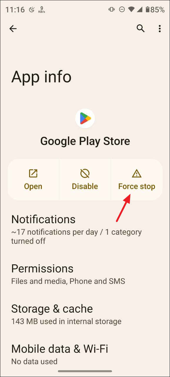 Fix 2: Force stop and relaunch the Play Store