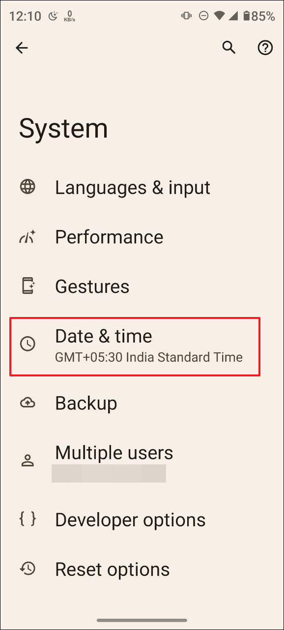- On the System page, tap on 'Date and time'.