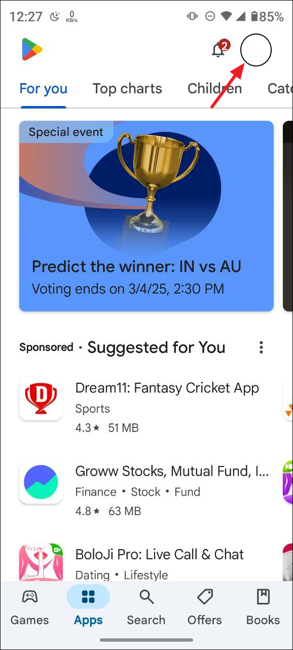 - Open the Play Store app and tap on your profile picture on the top right.