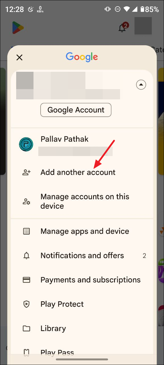 - Now, open the Play Store and select your main Google account by tapping on the profile picture at the top, as you did earlier.