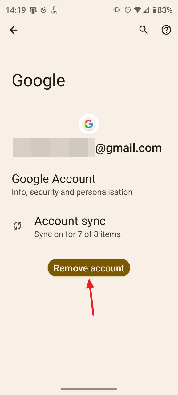- Then tap on the 'Remove account' button.