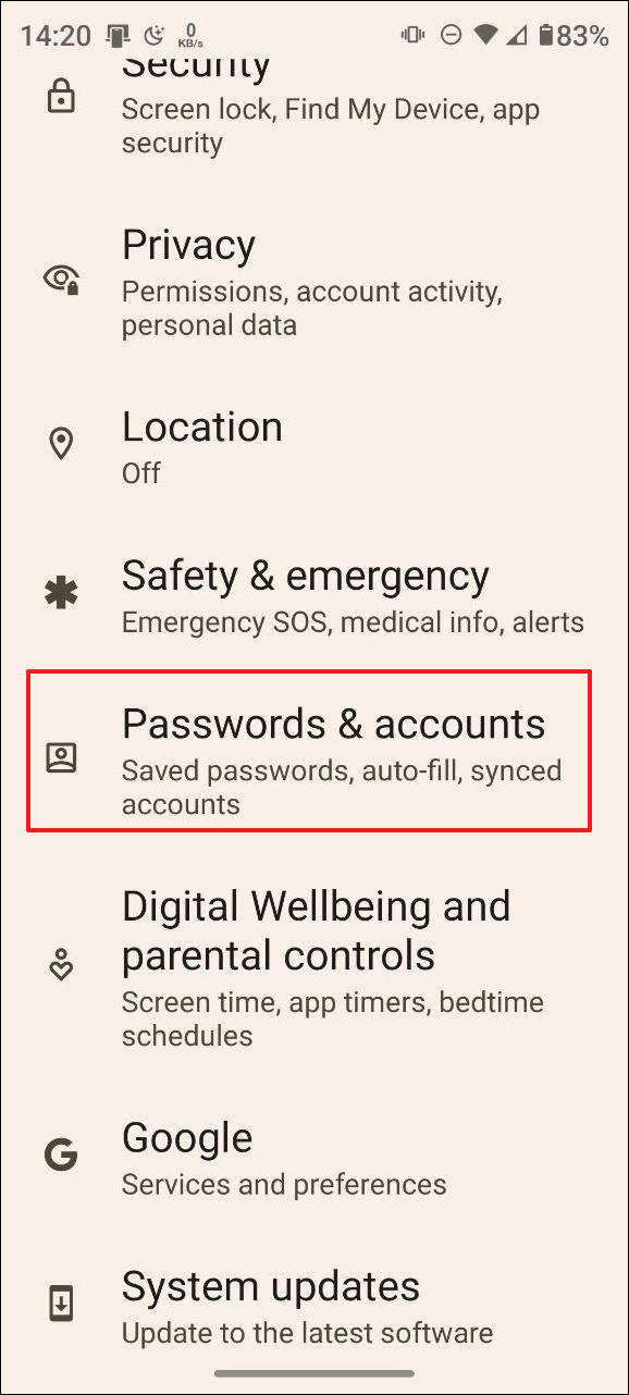 - Open the Settings app and tap on 'Passwords and accounts'.