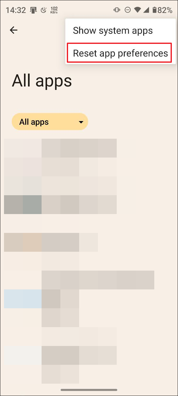 - Tap on 'Reset app preferences'.