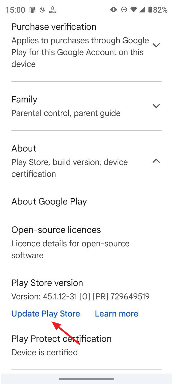 - Then tap on 'Update Play Store'.