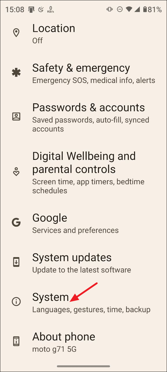 - Open the Settings app and tap on 'System'.