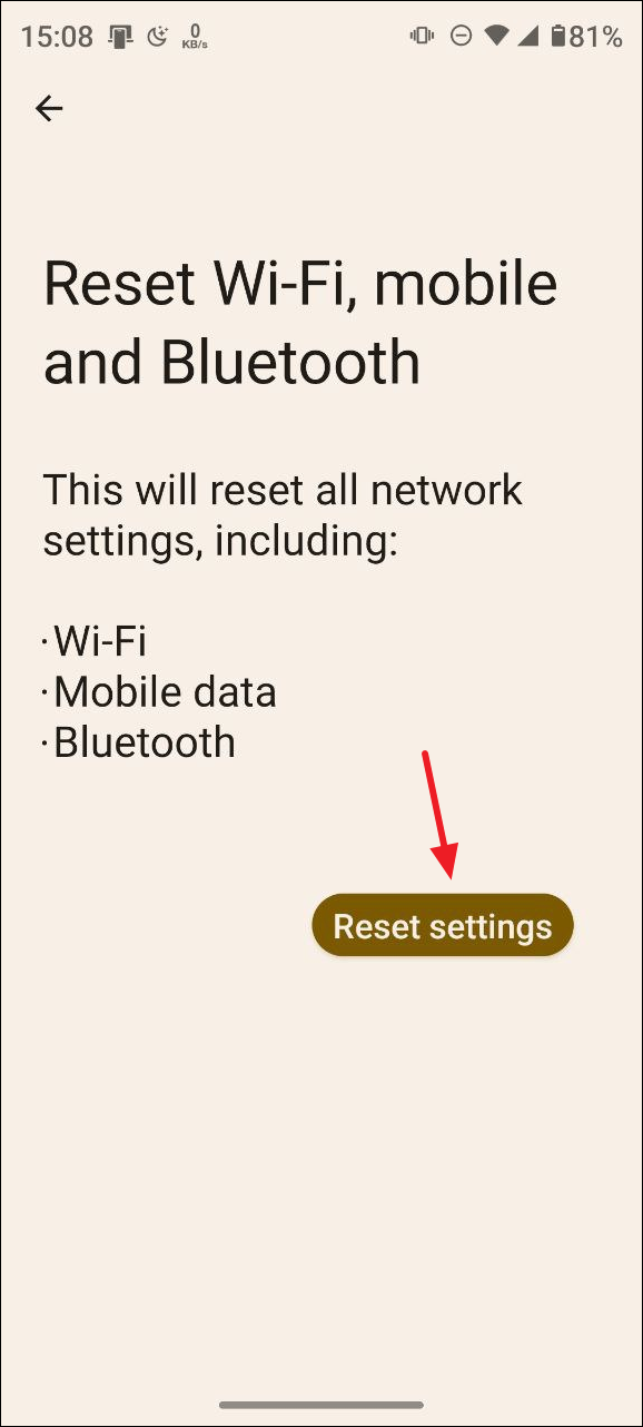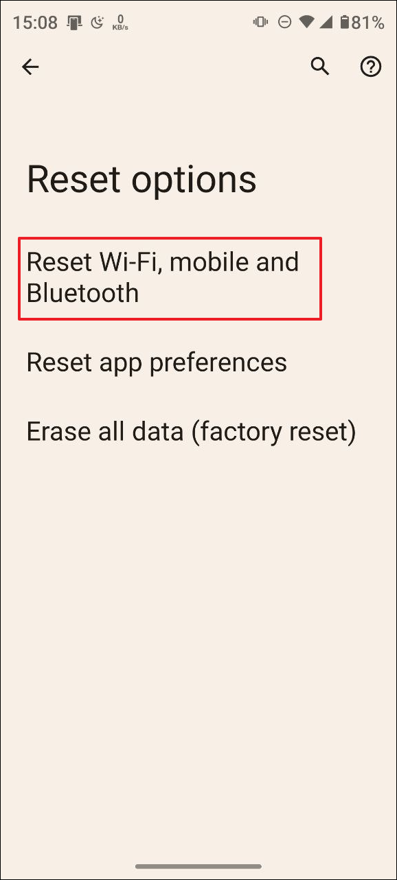 - Then tap on 'Reset Wifi, mobile, and Bluetooth'.
