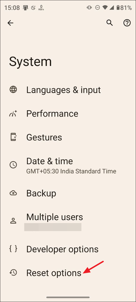 - Tap on 'Reset options'
