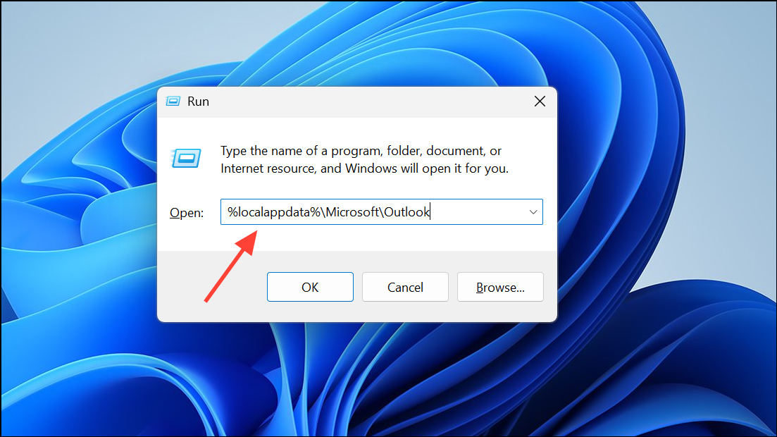 Step 3: Enter %localappdata%\Microsoft\Outlook and press Enter. This opens the Outlook data folder.