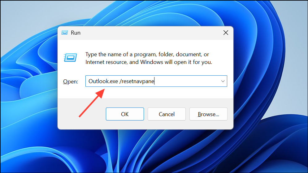 Step 4: Repeat the process and enter Outlook.exe /resetnavpane to reset the navigation pane.