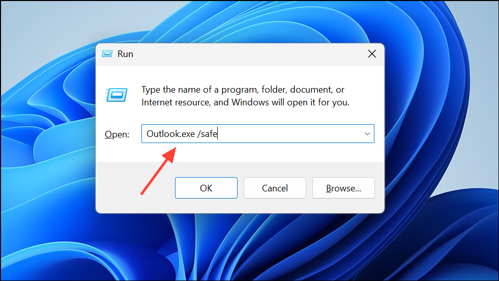 Step 1: Start Outlook in Safe Mode by pressing Windows + R, typing Outlook.exe /safe, and pressing Enter. Safe Mode loads Outlook without add-ins.