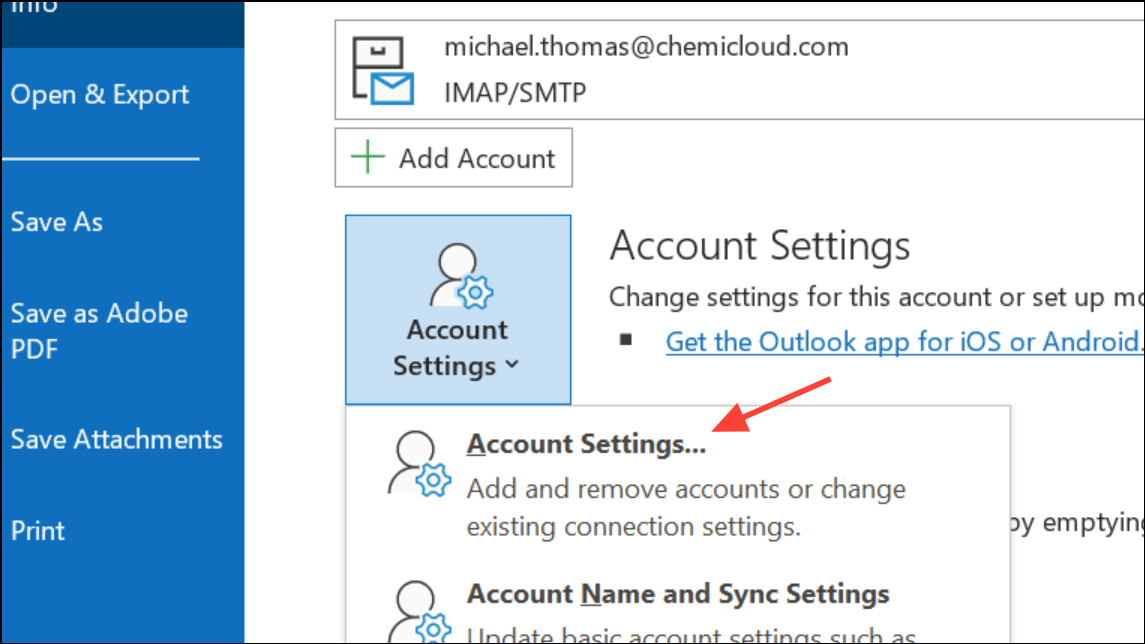 Step 1: In Outlook, go to File > Account Settings > Account Settings.