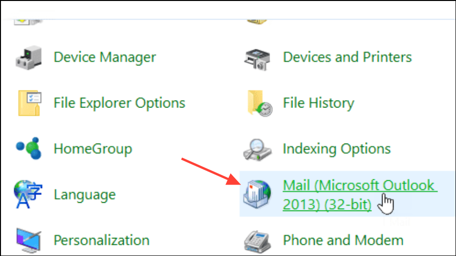 Step 1: Open the Control Panel and select Mail.
