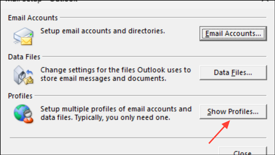 Step 2: Click Show Profiles and either Repair your existing profile or Add a new one.