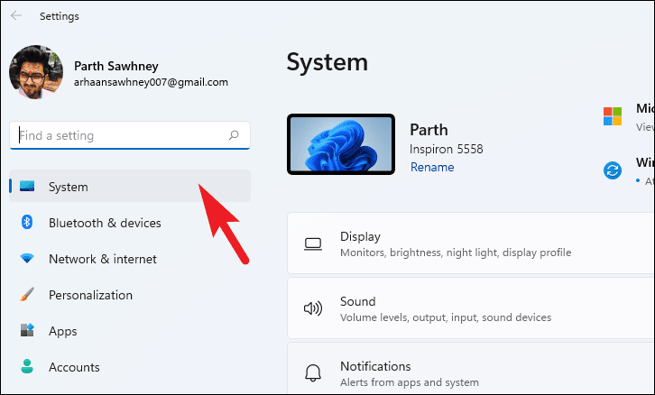 Step 2: Ensure the System tab is selected on the left sidebar.