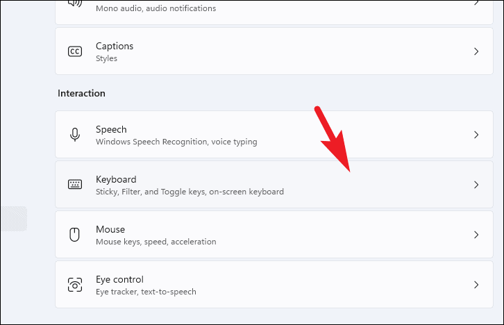 Step 3: Scroll down to the Interaction section on the right and click on Keyboard.