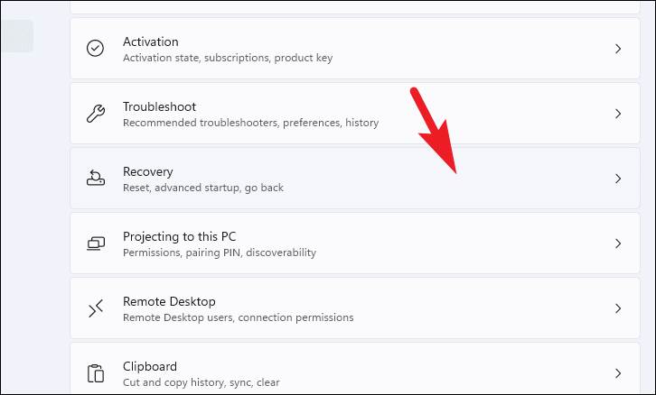 Step 4: Under Recovery options, click the Reset PC button next to Reset this PC.