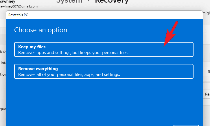 Step 5: In the Reset this PC window, choose Keep my files to retain your personal data while resetting Windows.