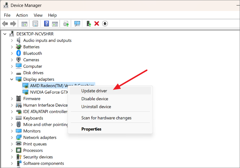 Step 3: Right-click your graphics card and select 'Update driver'.