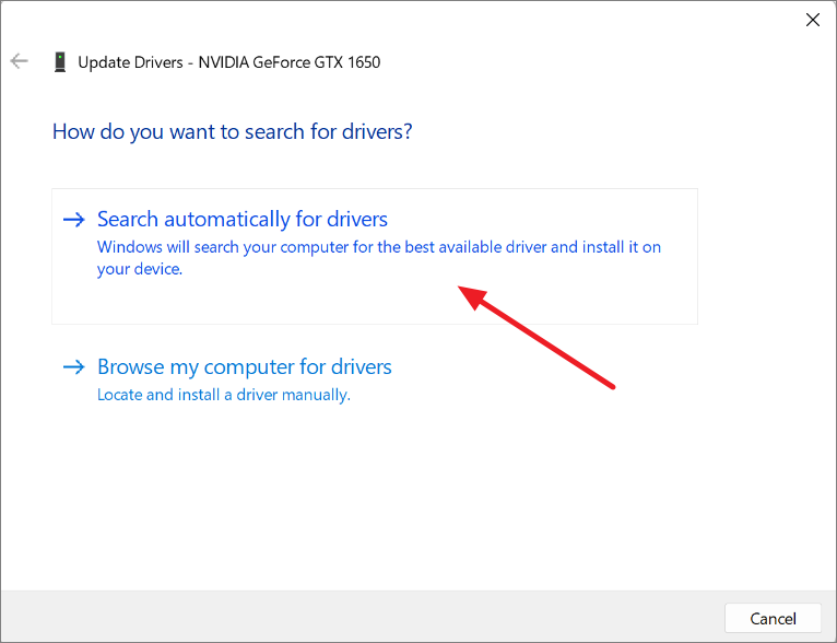 Step 4: Choose 'Search automatically for drivers' to let Windows find and install the latest driver.