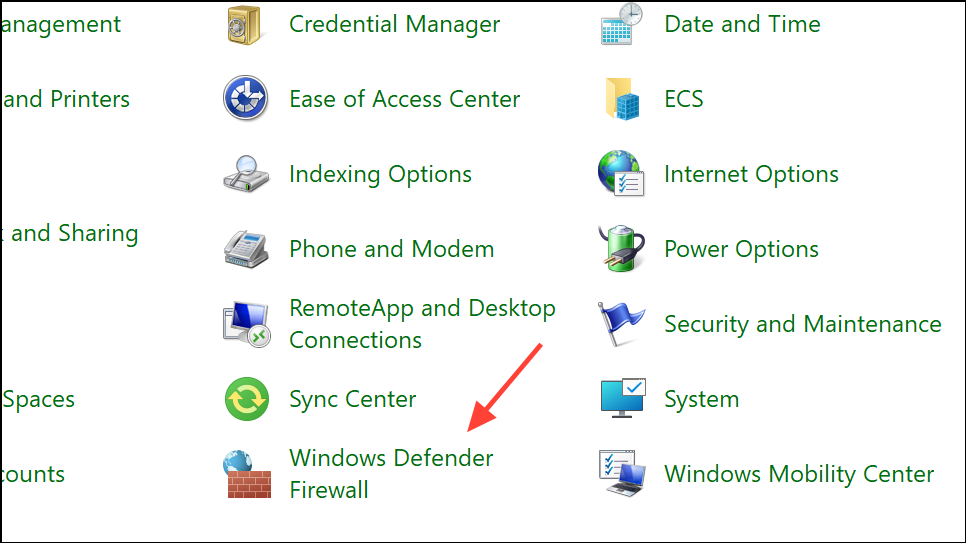 Step 1: Open the Windows Control Panel and select Windows Defender Firewall.
