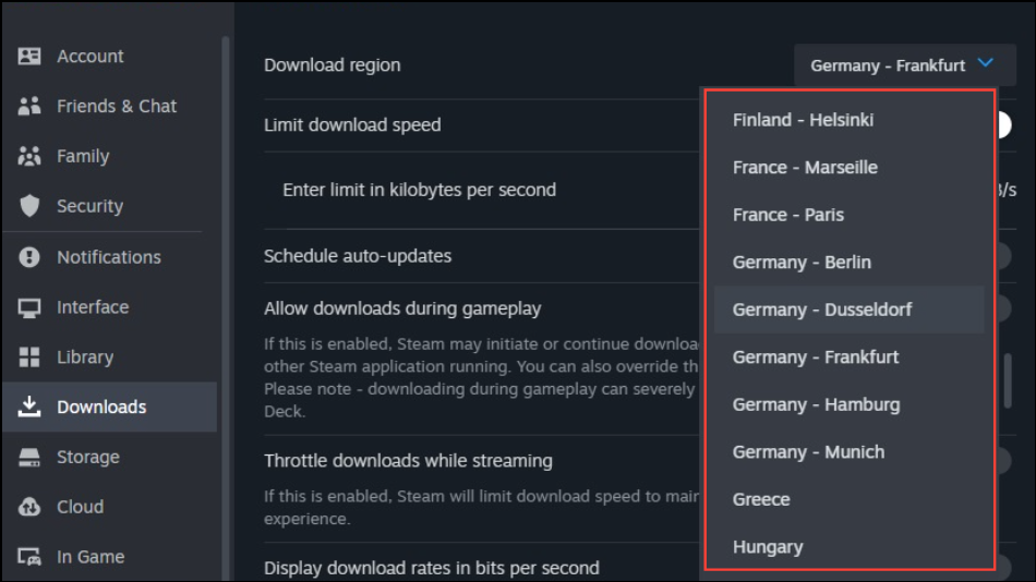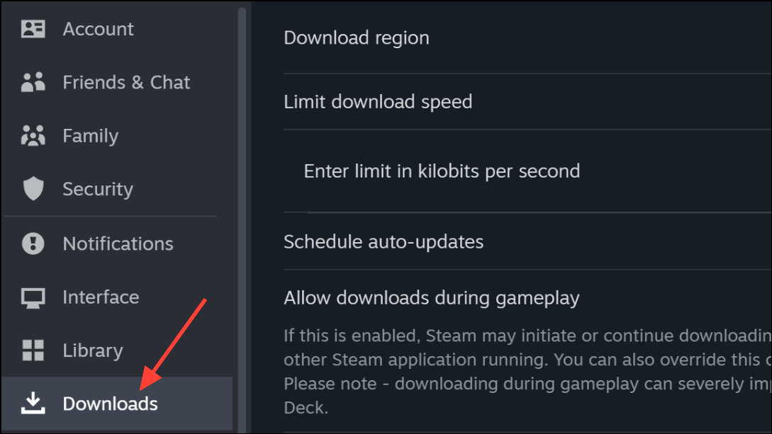 Step 1: Open Steam and navigate to Settings > Downloads.
