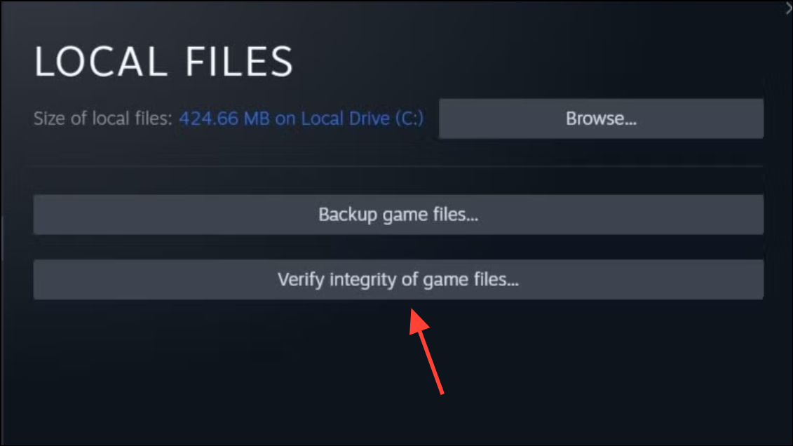 Step 2: Go to the Local Files tab and click Verify integrity of game files.