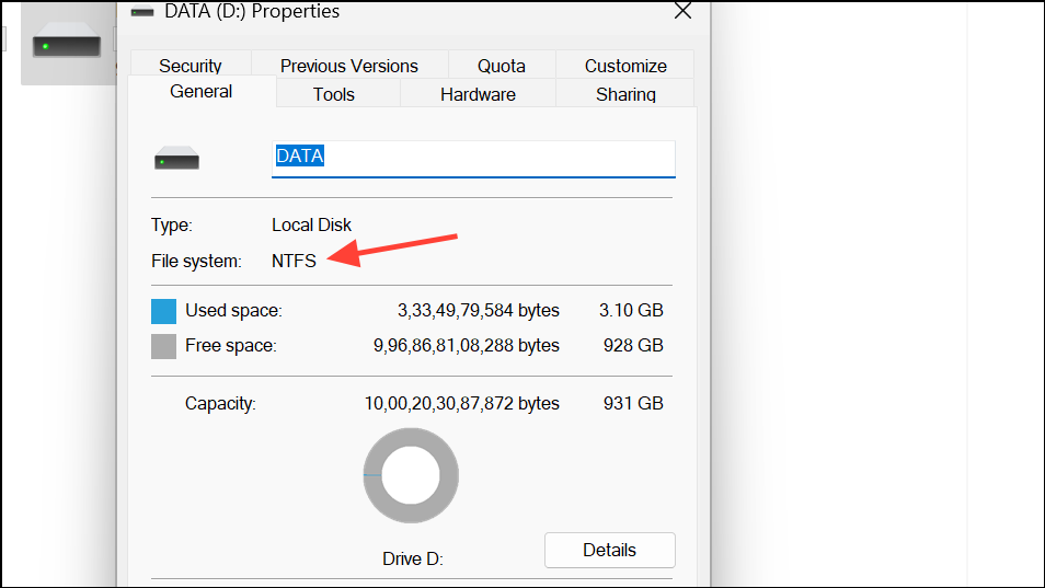Step 2: If the drive is not NTFS, back up your data and reformat the drive to NTFS.