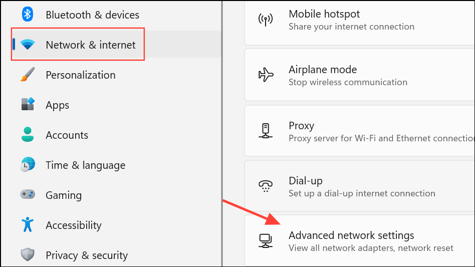 Step 1: Go to Settings > Network & Internet > Advanced network settings.
