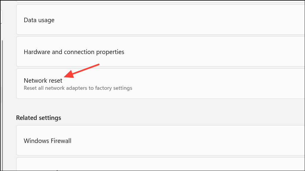 Step 3: Optionally, use Network reset at the bottom of the page to reinstall all network drivers and restore defaults. Note: This will disconnect you temporarily and remove saved Wi-Fi passwords.