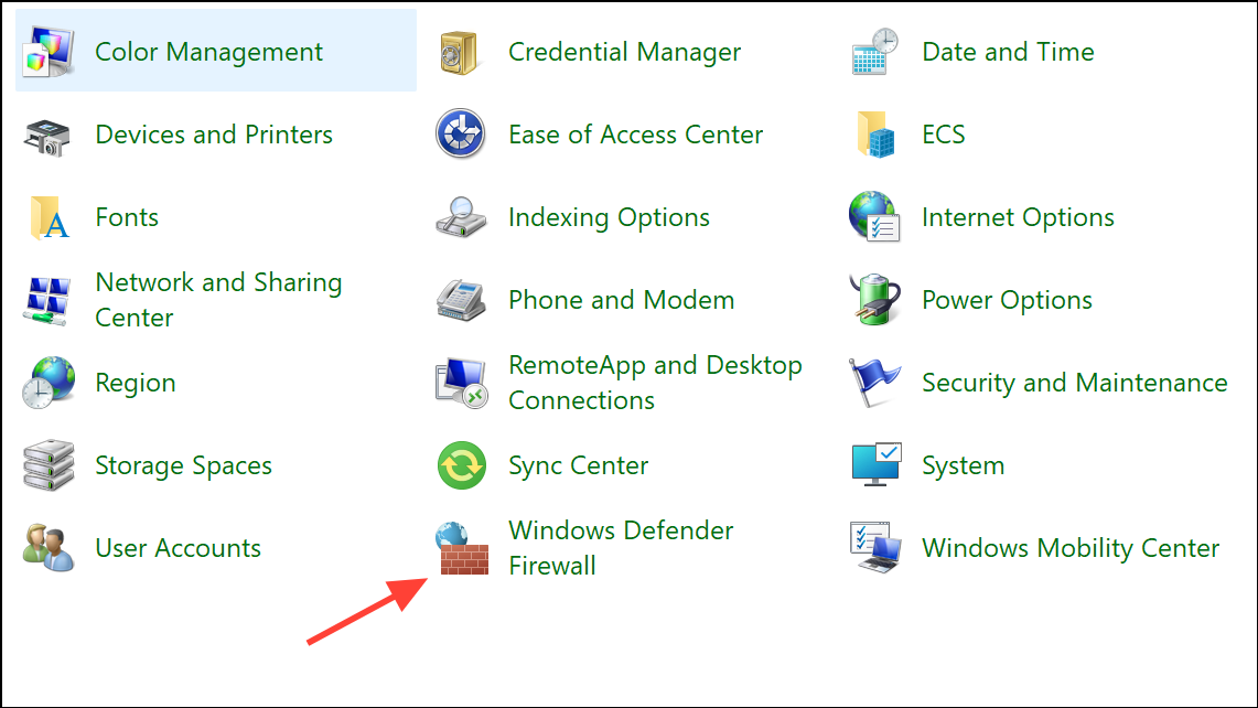 Step 1: Open Control Panel > System and Security > Windows Defender Firewall.