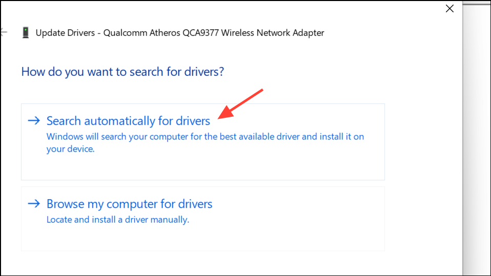 Step 3: Choose Search automatically for updated driver software and follow the prompts. Restart your computer when finished and test Steam’s connection.
