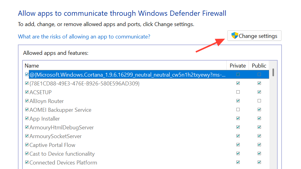 - Open Control Panel → System and Security → Windows Defender Firewall.