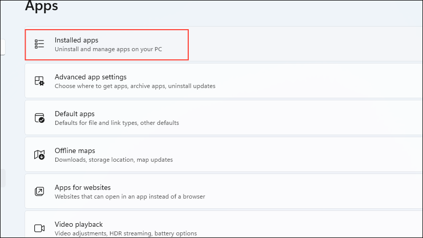 - On the Apps page, click on the 'Installed Apps' option at the top.