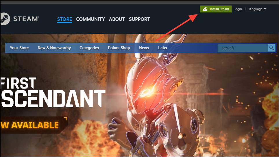 - Once Steam is uninstalled, visit the Steam website and click on the 'Install Steam' button on the top.