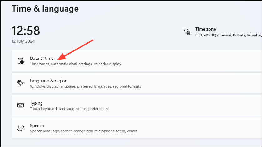 - Next, click on 'Date and Time', which will take you to a new page.