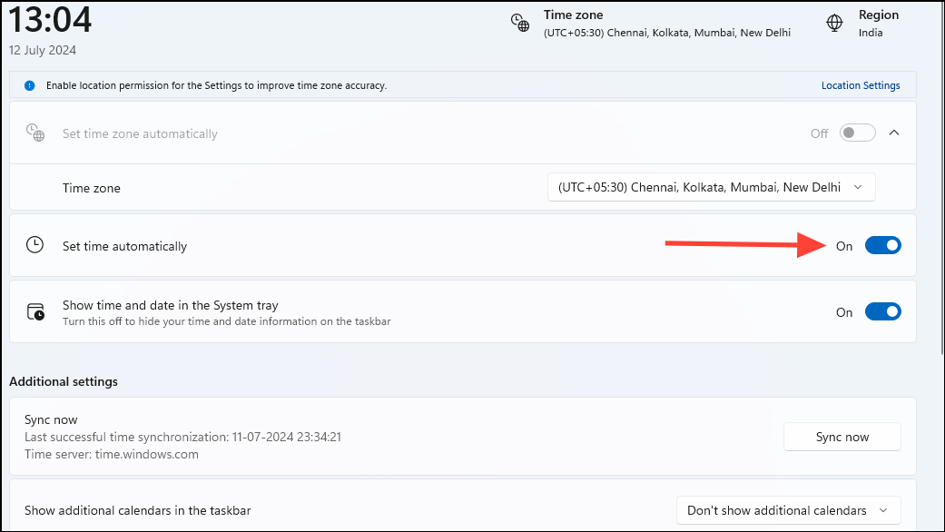 Fix 5: Update PC date and time settings