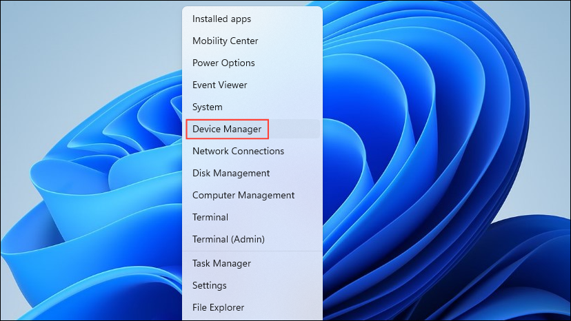 - Right-click on the Start button and then click on the 'Device Manager' option.
