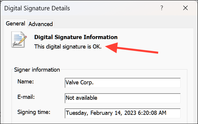 - If it shows "The digital signature is OK", Steam's files are intact. If not, you may need to reinstall Steam.