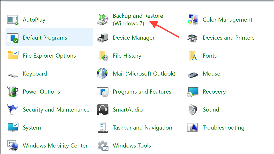 Step 1: Open Control Panel > Backup and Restore (Windows 7).