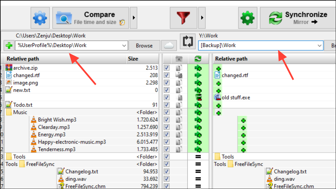Step 2: In FreeFileSync, set the left pane to your source folder (e.g., C:\Users\YourName\Documents) and the right pane to the destination folder on your external drive.