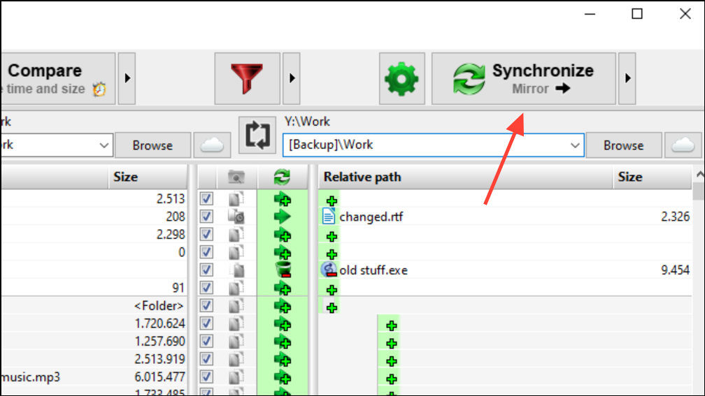 Step 3: Choose the Mirror option to ensure the backup drive matches your source folder. Only new, updated, or deleted files are synchronized each time you run the job.