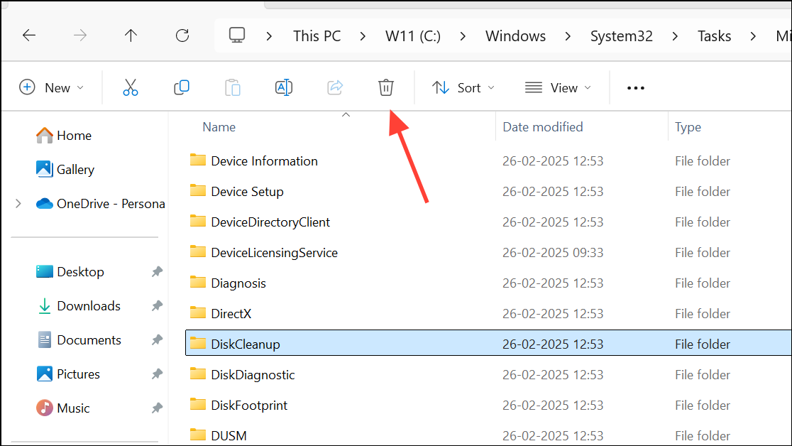 Step 4: Use File Explorer to navigate to the corresponding task file in C:\Windows\System32\Tasks\Microsoft\Windows\... and delete it as described in the first method.