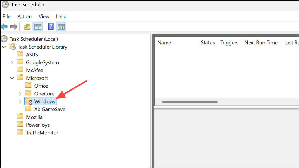 Step 2: In the left pane, expand Task Scheduler Library > Microsoft > Windows. Browse through the subfolders to locate the task associated with the error message.