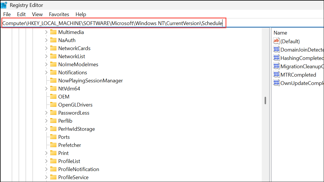 Step 2: In Registry Editor, navigate to HKEY_LOCAL_MACHINE\SOFTWARE\Microsoft\Windows NT\CurrentVersion\Schedule.