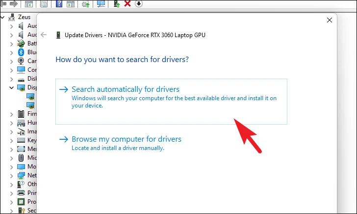 - Choose Search automatically for drivers. Windows will look for and install the latest drivers.