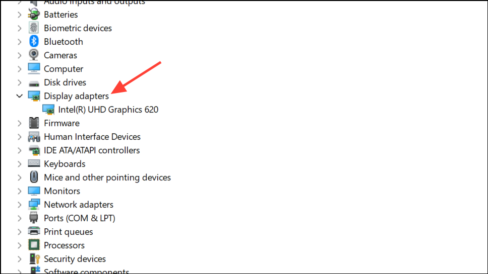 Step 1: Outdated or corrupt graphics drivers often cause display issues during screen sharing. Right-click the Start menu, open Device Manager, and expand Display adapters.